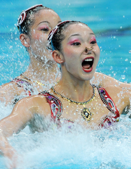 北京奧運(yùn)會(huì)花樣游泳比賽18日下午開(kāi)賽,在首日進(jìn)行的雙人預(yù)賽技術(shù)自選比賽中,有三支隊(duì)伍都派出“姊妹花”參賽。除了中國(guó)的雙胞胎組合蔣文文、蔣婷婷外,還有新西蘭的一對(duì)姐妹和荷蘭的一對(duì)雙胞胎。 三對(duì)姐妹中,最先出場(chǎng)的是新西蘭選手——26歲的尼娜·丹尼爾斯和23歲的麗莎·丹尼爾斯。她們完成了一套名叫《烏克蘭人》的動(dòng)作,得分列24對(duì)選手中的第23位。 “我們覺(jué)得今天表現(xiàn)不錯(cuò),”姐姐尼娜賽后說(shuō),“這是24年來(lái)新西蘭第一次參加奧運(yùn)會(huì)花游比賽,我們希望能夠推動(dòng)這項(xiàng)運(yùn)動(dòng)在新西蘭的發(fā)展! 荷蘭選手比安卡·范德費(fèi)爾登和索尼婭·范德費(fèi)爾登是一對(duì)雙胞胎,她們選擇了雄壯的合唱曲《布蘭詩(shī)歌》為自己伴奏,整個(gè)表演蕩氣回腸,最終名列第十!拔覀兊谋憩F(xiàn)跟音樂(lè)一樣棒,我們教練很開(kāi)心!北劝部ㄔ谫惡笳f(shuō)。 中國(guó)選手蔣文文/蔣婷婷的最后得分列第四位!拔医裉煸诮Y(jié)束動(dòng)作的時(shí)候重心不穩(wěn),有點(diǎn)小紕漏,不過(guò)明天肯定會(huì)有所提高!笔Y文文賽后說(shuō)。蔣婷婷也說(shuō):“沒(méi)關(guān)系,明天肯定會(huì)更好,我們有信心!