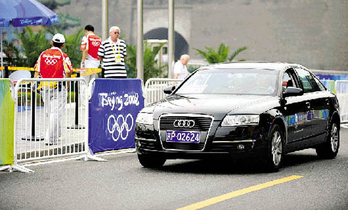 >> 上海大眾汽車將奧運官員們送達(dá)長城腳下
