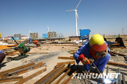 位于寧夏吳忠市太陽山移民開發(fā)區(qū)的太陽山風(fēng)電場是寧夏發(fā)電集團(tuán)有限責(zé)任公司投資建設(shè)的10個風(fēng)電場之一。太陽山風(fēng)電場一期45MW工程60臺風(fēng)力發(fā)電機(jī)已于4月2日全部成功并網(wǎng)發(fā)電,預(yù)計(jì)投資4.7億元的二期49.5MW工程項(xiàng)目也正在籌劃進(jìn)行中。寧夏正在邁出重點(diǎn)開發(fā)風(fēng)力和太陽能綠色能源的步伐。 | |