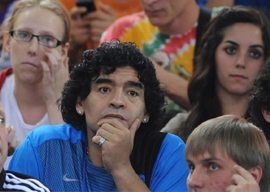 8月18日,阿根廷著名足球明星馬拉多納前來(lái)觀看阿根廷男籃與俄羅斯比賽。