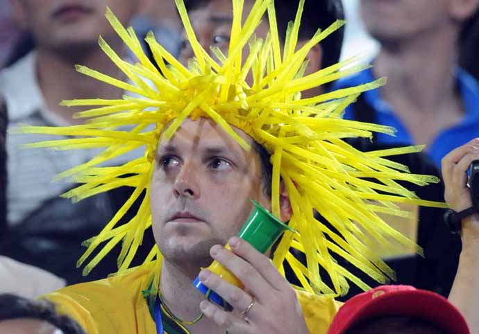 8月18日,巴西球迷。當(dāng)日,北京奧運(yùn)會(huì)沙灘排球1男子/4決賽結(jié)束。