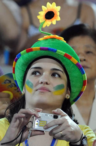 8月18日,巴西球迷。當(dāng)日,北京奧運(yùn)會(huì)沙灘排球1男子/4決賽結(jié)束。