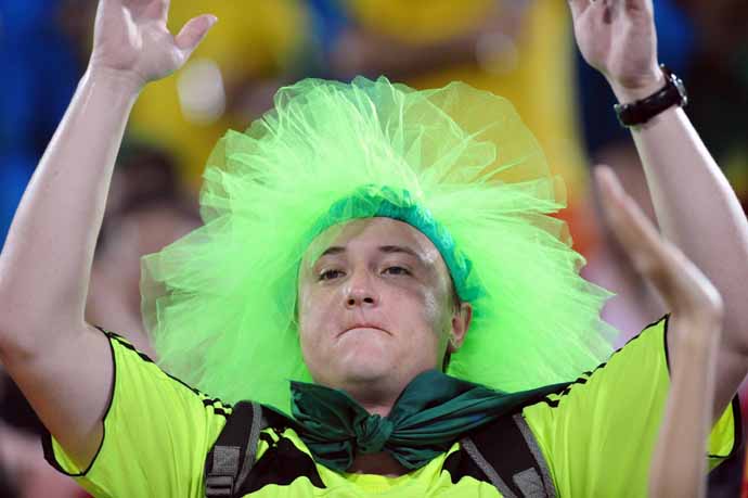 8月18日,巴西球迷。當(dāng)日,北京奧運(yùn)會沙灘排球1男子/4決賽結(jié)束。
