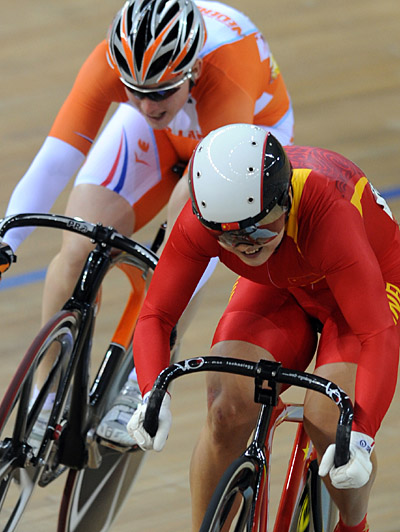一團(tuán)紅色火球與一團(tuán)橙色火球,挾裹著全場(chǎng)觀眾陣陣驚雷般的吶喊聲,以電光火石之速,沖向終點(diǎn)線。50米,40米,30米,20米,10米,沖刺。郭爽贏了!不過(guò),她贏的是銅牌。 盡管被寄予很大希望的郭爽沖金未成,但剛賽完的她在繞場(chǎng)騎行時(shí),全場(chǎng)仍然一片歡呼,觀眾打出“郭爽真爽”的紅色橫幅為她慶祝勝利。 本來(lái)她應(yīng)該可以力爭(zhēng)金牌。在先前的半決賽上,郭爽在前兩輪與上屆奧運(yùn)會(huì)季軍安·米亞雷斯戰(zhàn)平。在關(guān)鍵的第三輪,這位內(nèi)蒙古姑娘又一次發(fā)威,以非常微弱的優(yōu)勢(shì)先于米亞雷斯沖過(guò)終點(diǎn)線。不幸的是,她因侵入對(duì)手車道犯規(guī)而被降級(jí)到季軍爭(zhēng)奪戰(zhàn)。 “奪得銅牌我感到非常高興和滿意,這證明我今后有更大的發(fā)展空間,”22歲的郭爽并沒(méi)有覺(jué)得銅牌代表遺憾。 但64歲高齡的法國(guó)教練丹·莫雷龍卻表示出非常遺憾:“盡管英國(guó)選手實(shí)力強(qiáng)勁,但郭爽完全可以沖擊金牌,銀牌對(duì)她猶如探囊取物,一枚銅牌實(shí)在太可惜了。”曾帶出連續(xù)四次世錦賽冠軍、連續(xù)兩屆奧運(yùn)會(huì)冠軍費(fèi)·巴朗熱的莫雷龍?jiān)谕诵萸皼](méi)能把郭爽帶成奧運(yùn)會(huì)冠軍。 1986年2月26日,郭爽出生在郭靖曾經(jīng)彎弓射大雕的大草原。13歲那年,她雙腳踏上了自行車運(yùn)動(dòng)生涯。2002年,她被派往瑞士的世界自行車中心學(xué)習(xí),主攻女子爭(zhēng)先賽,師從馬涅教練,被馬涅教練贊為“聰明、天賦好、領(lǐng)悟力強(qiáng)、非常勤奮,是他最好的學(xué)生”。此時(shí),她在世界級(jí)舞臺(tái)上已經(jīng)嶄露頭角,脖子上已經(jīng)掛了好幾枚亮燦燦的金牌。據(jù)統(tǒng)計(jì),在2005年之前,小郭爽連續(xù)6次獲得世界自行車賽女子爭(zhēng)先賽青少年組冠軍。