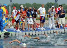 在20日上午進行的北京奧運會女子10公里馬拉松游泳比賽中,俄羅斯選手伊利琴科獲得冠軍,成為奧運會歷史上首個馬拉松游泳冠軍。 伊利琴科奪冠的成績是1小時59分27秒7。 10公里馬拉松游泳比賽是首次進入奧運會正式項目,設(shè)男、女兩個小項。北京奧運會的馬拉松游泳比賽在順義水上奧林匹克公園靜水水道進行,25名選手需要游四個來回。因為沒有賽道限制,選手必須學會在“混戰(zhàn)”中占據(jù)優(yōu)勢位置,并克服其他人的干擾。 伊利琴科在這個項目上具有超強實力。她雖然只有20歲,但是“野戰(zhàn)”經(jīng)驗豐富、戰(zhàn)績輝煌,自2004年以來已經(jīng)8次取得5公里、10公里馬拉松游泳世錦賽冠軍,堪稱馬拉松游泳界的“女皇”。 | |