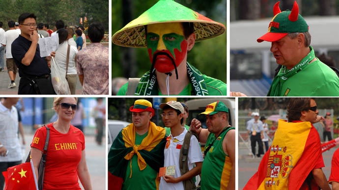 北京奧運(yùn)會籃球比賽進(jìn)行得如火如荼,而每次比賽時場內(nèi)外各國球迷的表現(xiàn)也成為另一道獨(dú)特的風(fēng)景。這組拼版照片分別是一名球迷在賽場外求購門票(上左),兩名立陶宛球迷的奇異打扮(上中、上右),一名支持中國隊的外國球迷(下左),中外球迷合影(下中),一名西班牙球迷身披國旗(下右)(8月20日攝)。