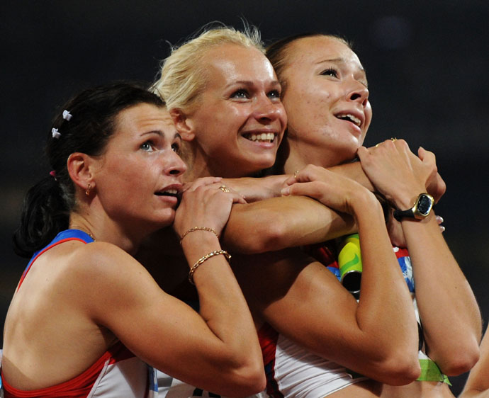 8月22日,俄羅斯隊選手在比賽后觀看成績。當(dāng)日,俄羅斯隊在北京奧運會女子4X100米接力決賽中以42秒31的成績奪得金牌。