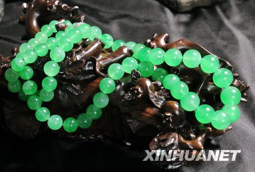 這是七彩云南絕世翡翠珠鏈(9月22日攝)。