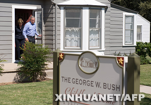 10月4日,美國(guó)總統(tǒng)布什攜夫人勞拉來(lái)到其位于得克薩斯州米德蘭城的兒時(shí)住所。新華社/法新