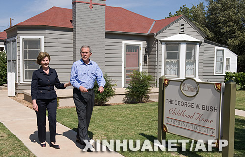 10月4日,美國(guó)總統(tǒng)布什攜夫人勞拉來(lái)到其位于得克薩斯州米德蘭城的兒時(shí)住所。