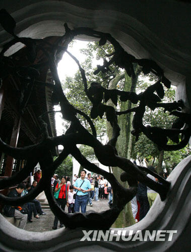 當日是國慶黃金周的第六天,蘇州古典園林獅子林內(nèi)造型別致的各式花窗,令前來游覽的中外游客陶醉其中,大飽眼福。