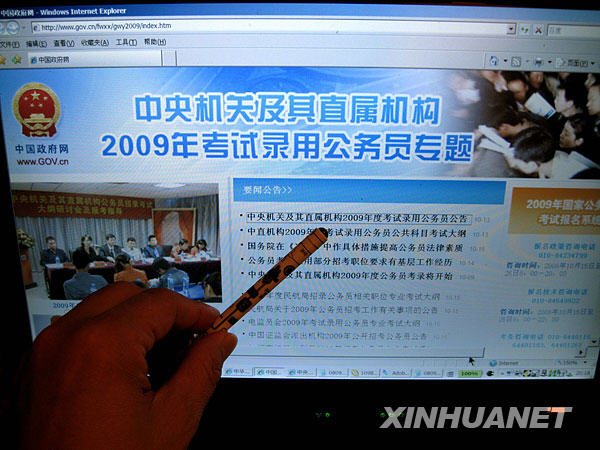 當(dāng)日,2009年國(guó)家公務(wù)員考試開(kāi)始報(bào)名,報(bào)名全部采取網(wǎng)絡(luò)報(bào)名的方式進(jìn)行,不設(shè)現(xiàn)場(chǎng)報(bào)名。 | |