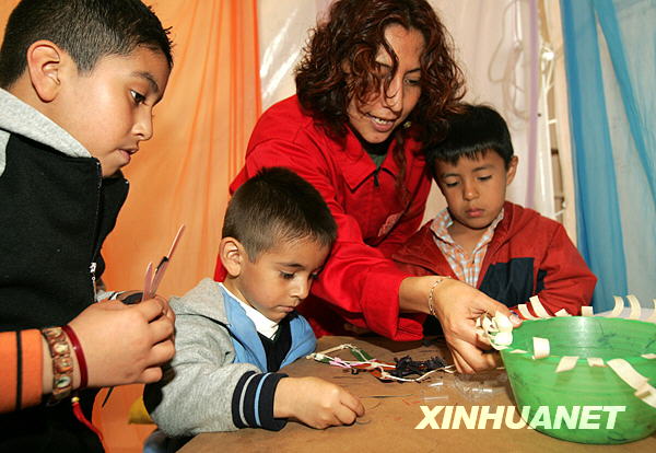 10月18日,在墨西哥城舉辦的墨西哥第八屆圖書節(jié)上,輔導老師指導兒童拼接玩具。