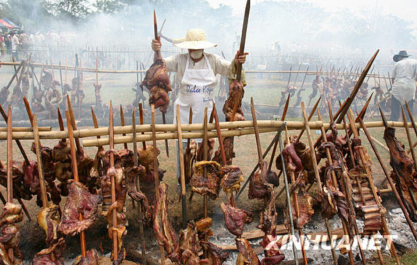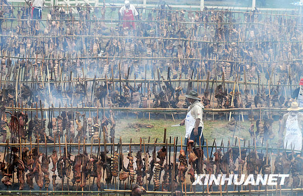 當天,4萬余人在8小時內(nèi)分享了現(xiàn)場烤制的約2.6萬公斤的烤肉,打破美國人1996年5月18日露天一次性吃掉2.174萬公斤烤肉的吉尼斯世界記錄。主辦方將把活動收入用于慈善事業(yè),幫助遭受虐待的女性和白血病患兒。