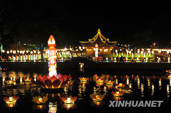 當(dāng)日,佛教名山浙江普陀山舉行“心燈·心愿”佛燈藝術(shù)展,千余盞體現(xiàn)傳統(tǒng)佛教文化藝術(shù)的彩燈點(diǎn)亮海島,通過(guò)燈光、音樂(lè)營(yíng)造出普陀山“海天佛國(guó)、琉璃世界”的文化特質(zhì)。