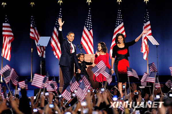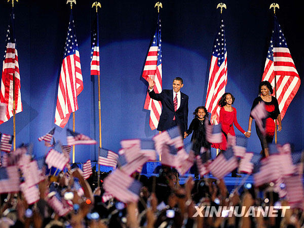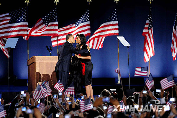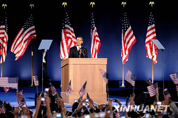 11月4日,美國民主黨總統(tǒng)候選人、伊利諾伊州參議員奧巴馬在芝加哥宣布大選獲勝。
