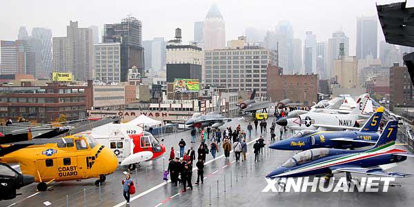 11月8日,在美國紐約曼哈頓86號(hào)碼頭,游客在“無畏”號(hào)?詹┪镳^甲板上參觀。當(dāng)日,歷經(jīng)兩年大修的美國海軍退役航母“無畏”號(hào)重新對(duì)游客開放。“無畏”號(hào)航母1943年服役,歷經(jīng)二戰(zhàn)、冷戰(zhàn)和越戰(zhàn),1974年退役后,于1982年被改建為?詹┪镳^供游客參觀,已吸引了逾千萬游客。