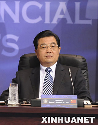11月15日,中國國家主席胡錦濤在華盛頓出席二十國集團(tuán)領(lǐng)導(dǎo)人金融市場和世界經(jīng)濟(jì)峰會。 新華社記者 樊如鈞