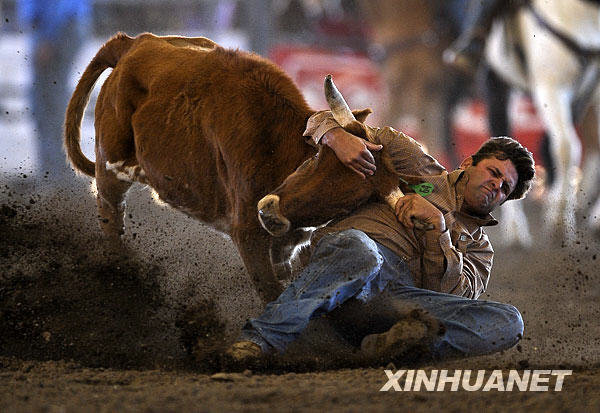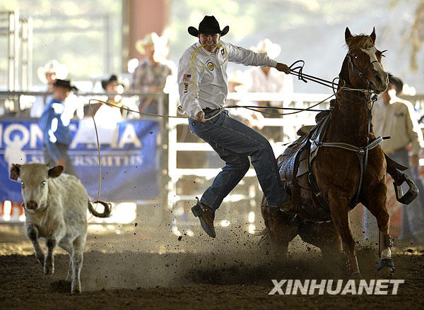 11月16日,來自內(nèi)華達(dá)州拉斯維加斯的選手賈森在套牛比賽中。當(dāng)日,2008加利福尼亞專業(yè)牛仔競技大會在加州諾科市舉行,來自加州、內(nèi)華達(dá)和亞利桑那州的專業(yè)牛仔競技選手參加為期三天的比賽。牛仔競技源自牛仔在放牧過程中的各種騎術(shù)、馴馬和擒牛等技巧,如今演變成有規(guī)則觀賞性強(qiáng)的競技比賽,深受北美人的喜愛,每年僅美國專業(yè)牛仔競技協(xié)會舉辦的比賽就接近百場。 |