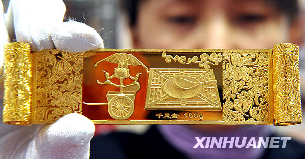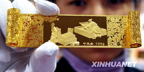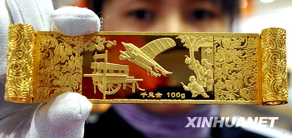寧夏珠寶城出售的千足金“中國古代四大發(fā)明”——造紙術(11月23日攝)。