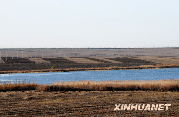 五大連池火山堰塞湖已被大片耕地包圍(10月14日攝)。