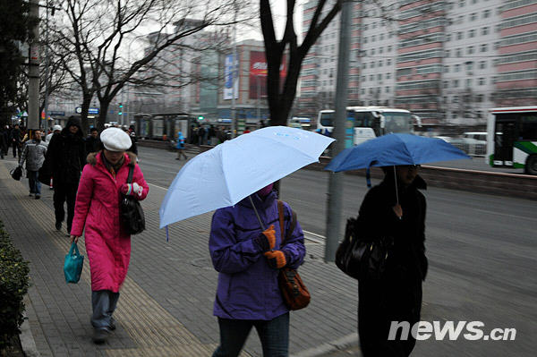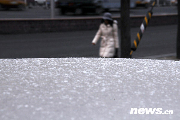 12月10日,一位行人從車頂積雪的汽車旁走過。 由于受高空西來槽與低層偏東氣流的共同影響,10日白天北京地區(qū)陰有小雪轉(zhuǎn)多云。昨晚8點到今天早上6點,北京市郊已經(jīng)出現(xiàn)降雪;主要市區(qū)的降雪從6點開始零星落下,但雪量偏小。入冬以來,北京周邊地區(qū)一直干燥少雨雪,水汽含量低,即使經(jīng)歷了前幾日的強冷空氣襲擊,卻因為沒有適時的暖濕氣流來配合,造成“無水可下”的局面。