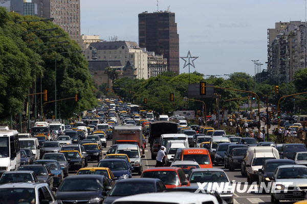 12月12日,在阿根廷首都布宜諾斯艾利斯,眾多車輛擁堵在路上。