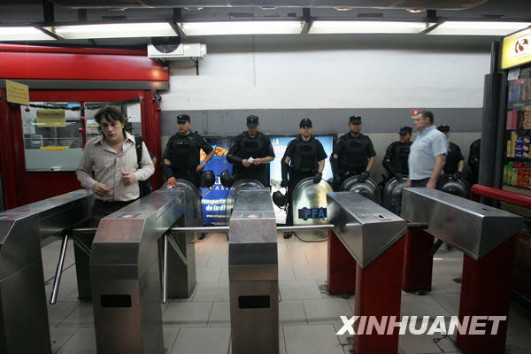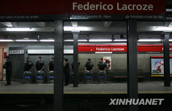 12月12日,在阿根廷首都布宜諾斯艾利斯,政府在地鐵站內(nèi)布置大批警察防止意外發(fā)生。