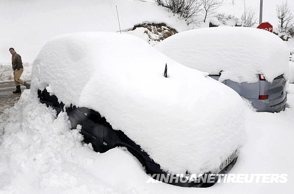 12月15日,在西班牙北部帕哈雷斯鎮(zhèn),一名男子從被大雪覆蓋的汽車旁經(jīng)過。新華社/路透