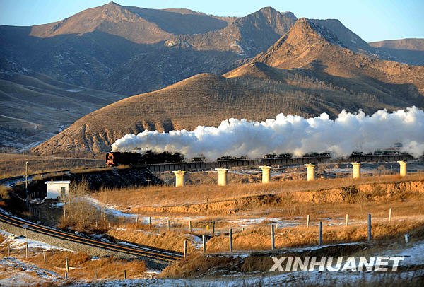 12月27日,“集通號”草原旅游蒸汽火車駛過內(nèi)蒙古克什克騰旗經(jīng)棚—嘎拉德斯太段的司明義特大橋。當(dāng)日,由內(nèi)蒙古集通鐵路集團與克什克騰旗共同舉辦的第二屆蒸汽機車旅游節(jié)在經(jīng)棚火車站拉開帷幕。在為期7天的旅游節(jié)上,主辦方將為來自國內(nèi)外的萬余名旅游者、攝影師舉辦蒸汽機拍攝、乘坐“紅色專列”及鐵路沿線采風(fēng)活動。