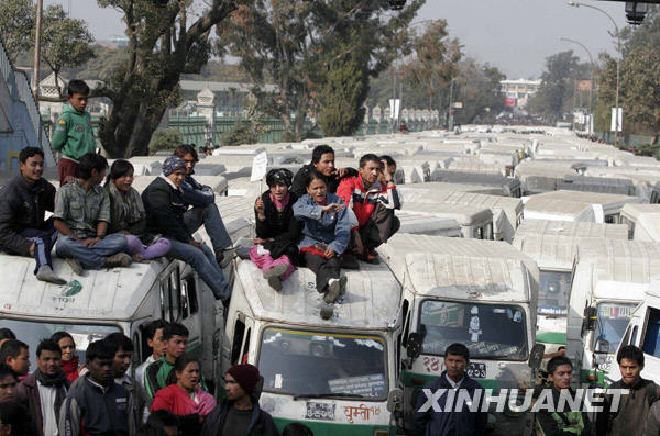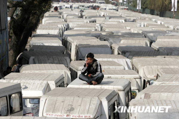 1月15日,在尼泊爾首都加德滿都,電動(dòng)車司機(jī)坐在車頂上參加抗議活動(dòng)。當(dāng)日,電動(dòng)車司機(jī)們將他們駕駛的車輛停放在加德滿都的道路上,呼吁政府為他們提供穩(wěn)定的電力供應(yīng)。自本月11日起,尼泊爾的電力短缺問(wèn)題日漸嚴(yán)重,商業(yè)和住宅用電每天中斷16個(gè)小時(shí)。
