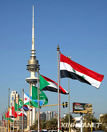 1月18日,阿拉伯國(guó)家聯(lián)盟(阿盟)成員國(guó)的旗幟在科威特首都科威特城街頭飄揚(yáng)。1月19日至20日,首屆阿拉伯國(guó)家經(jīng)濟(jì)峰會(huì)將在科威特舉行。