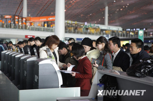1月20日,旅客在北京首都國(guó)際機(jī)場(chǎng)排隊(duì)辦理乘機(jī)手續(xù)。當(dāng)日是農(nóng)歷臘月二十五,大批旅客踏上回家過(guò)年的旅程,春運(yùn)客流高峰到來(lái)。