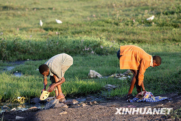 2月3日,在埃塞俄比亞首都亞的斯亞貝巴郊區(qū),一名男子在一條水溝旁洗鞋,而他的同伴用同樣的水洗臉。供水設(shè)施的匱乏使得當(dāng)?shù)匾恍┚用癫坏貌幻咳杖プ∷浇乃蛐∠乘。隨著非洲大陸總體政治局勢(shì)趨于穩(wěn)定,許多非洲國(guó)家都將基礎(chǔ)設(shè)施建設(shè)作為振興經(jīng)濟(jì)的優(yōu)先發(fā)展方向,“非洲基礎(chǔ)設(shè)施建設(shè)”也是目前正召開(kāi)的第12屆非洲聯(lián)盟(非盟)首腦會(huì)議的主題。 |