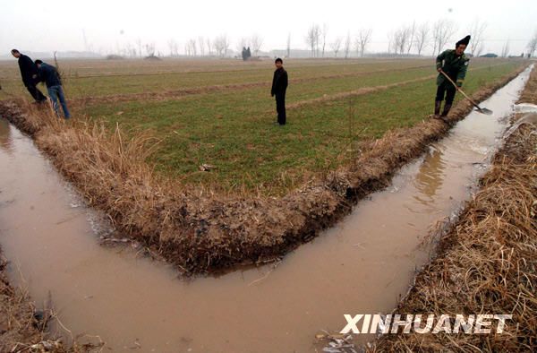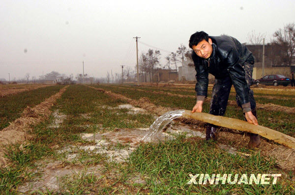 2月4日,陜西省蒲城縣洛惠渠陳莊管理站專業(yè)澆地隊(duì)員馬春成(右一)正在田間實(shí)施灌溉。面對(duì)日趨嚴(yán)重的旱情,陜西渭南要求全市各灌區(qū)動(dòng)用一切水利設(shè)施,挖掘水源潛力,擴(kuò)大灌溉面積。渭南市是陜西小麥主產(chǎn)區(qū)之一,目前已經(jīng)形成百日連旱,全市各類農(nóng)作物受旱面積達(dá)到380萬(wàn)畝,其中重旱災(zāi)20萬(wàn)畝。 |