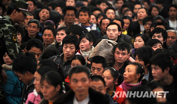 2月5日,旅客們在成都火車北站等候上車。成都鐵路客流近幾日持續(xù)上升,主要以農(nóng)民工為主,目的地為北京、上海、廣州等地。據(jù)鐵路部門預計,2月10日前,成都火車北站的日客流量將保持在8萬人次以上。
