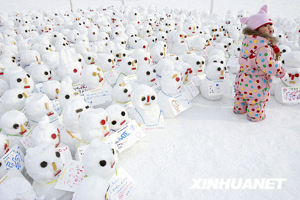 2月7日,在日本北海道札幌市的第60屆札幌冰雪節(jié)上,一名小女孩在一堆雪人中間玩耍。札幌冰雪節(jié)始于1950年,每年在當(dāng)?shù)匮┳疃、氣溫最低?月舉行。作為日本最大的冬季冰雪旅游項(xiàng)目,札幌冰雪節(jié)在最近5年內(nèi)平均每年吸引約200萬游客。今年的冰雪節(jié)從2月5日持續(xù)到2月11日。