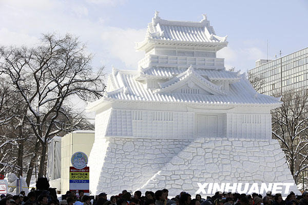 2月7日,在日本北海道札幌市的第60屆札幌冰雪節(jié)上,一座以日本名城濱松城建筑為原型制作的雪雕吸引了眾多游人。