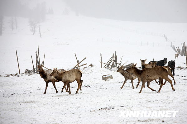 2月11日,幾只馬鹿在雪中覓食。當(dāng)日,新疆哈密北部沿天山一帶普降小到中雪,這場(chǎng)春雪有效緩解了巴里坤草原的旱情,對(duì)草場(chǎng)返青十分有利。