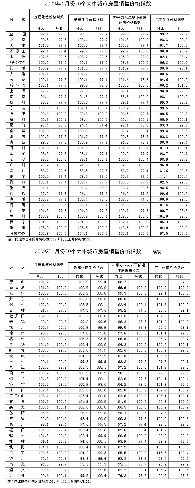 根據(jù)國(guó)家發(fā)展改革委、國(guó)家統(tǒng)計(jì)局調(diào)查顯示,1月份,全國(guó)70個(gè)大中城市房屋銷售價(jià)格同比下降0.9%,降幅比12月擴(kuò)大0.5個(gè)百分點(diǎn);環(huán)比下降0.2%。