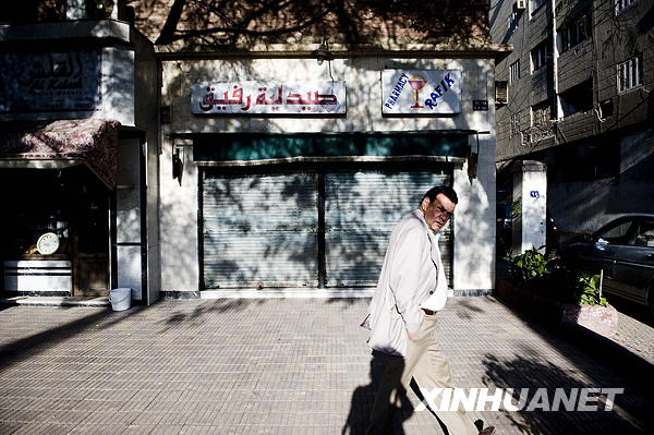 2月17日,一名埃及男子從一家位于埃及首都開羅麥阿迪區(qū)的藥店前走過。