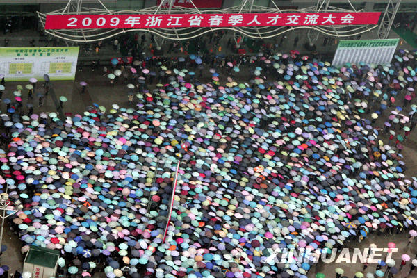 杭州:數(shù)萬人雨中求職