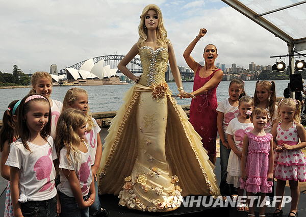 3月9日,在澳大利亞悉尼,模特埃麗卡·海娜茨準(zhǔn)備切下高達2.1米的“芭比娃娃”巧克力蛋糕,以慶祝芭比娃娃50歲生日。當(dāng)日,玩具芭比娃娃迎來50歲生日。芭比娃娃是美國人——美泰玩具公司創(chuàng)辦人露絲·漢德勒于1959年設(shè)計創(chuàng)造的,以其女兒芭芭拉的昵稱命名。新華社/法新