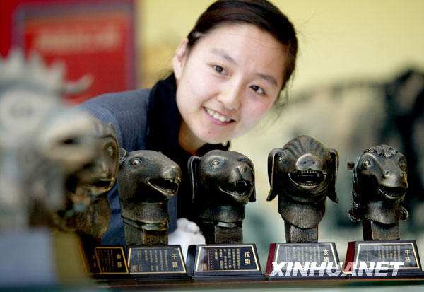 3月9日,一名女子觀看微縮的圓明園“獸首”紀(jì)念品。這種以1比10比例微縮制作的圓明園“獸首”紀(jì)念品在沈陽推出后,引起了不少市民的關(guān)注。