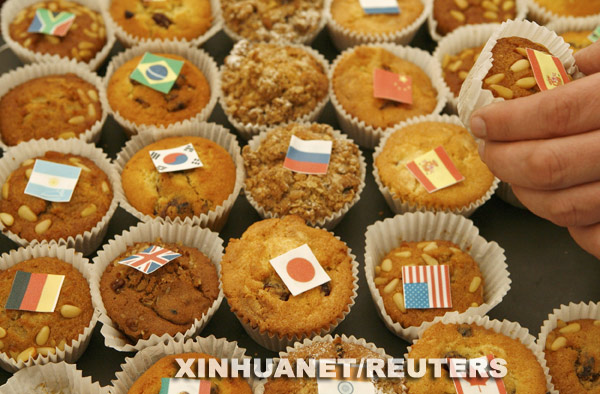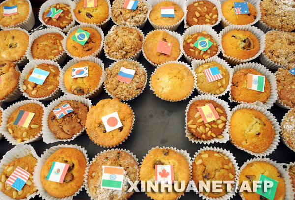 3月14日,在英國首都倫敦以南約50公里的霍舍姆的新聞中心,各國攝影記者的鏡頭聚焦在貼有二十國集團(tuán)成員旗幟的小點(diǎn)心上。新華社/法新 | |