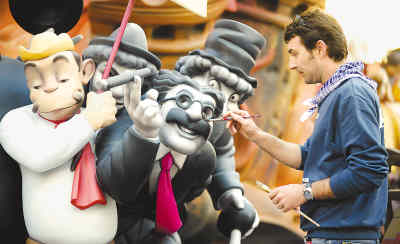 每年3月中旬,西班牙巴倫西亞市都會(huì)舉行為期一周的“火節(jié)”,以紀(jì)念這座城市的守護(hù)神圣約瑟夫。圖為一名藝術(shù)家正在描繪為慶!盎鸸(jié)”而準(zhǔn)備的塑像!盎鸸(jié)”的高潮是燒掉各種奇形怪狀的塑像。新華社發(fā)