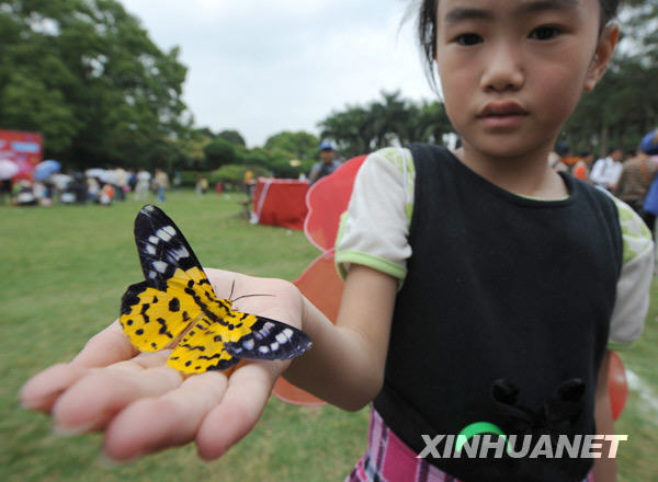 當日,廣西南寧市南寧動物園舉行“萬只蝴蝶放飛”活動,吸引了近千名市民。60多個品種、上萬只色彩斑斕的蝴蝶不僅讓市民大開眼界,也讓動物園成為蝴蝶的海洋。