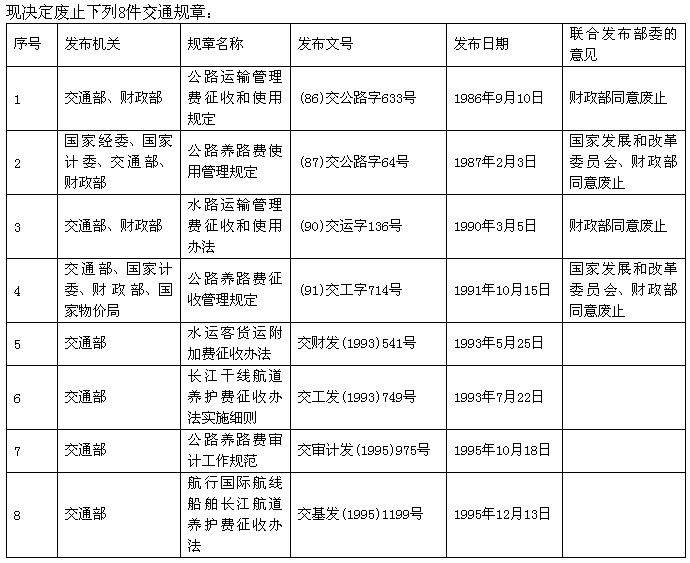 關(guān)于廢止8件交通規(guī)章的決定