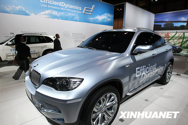 這是4月8日在美國紐約舉行的紐約國際車展媒體開放日上拍攝的一款寶馬X6混合動力車。新華社記者劉欣攝