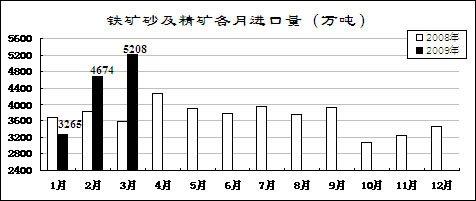 鋼材價(jià)格先升后降。受市場(chǎng)預(yù)期好轉(zhuǎn)和銷售企業(yè)補(bǔ)充庫(kù)存影響,鋼材價(jià)格從年初開(kāi)始小幅回升,2月上旬國(guó)內(nèi)市場(chǎng)鋼材價(jià)格綜合指數(shù)為109.26,比去年12月最后一周回升5.96點(diǎn)。但由于有效需求沒(méi)有明顯恢復(fù)而生產(chǎn)增長(zhǎng)較快,2月中旬開(kāi)始鋼材價(jià)格持續(xù)大幅回落。3月最后一周,國(guó)內(nèi)市場(chǎng)鋼材價(jià)格綜合指數(shù)為97.16,比2月上旬回落12.1點(diǎn),低于去年最低水平4.33點(diǎn)。3月份,6.5mm高線、20mm中厚板平均價(jià)格分別為3368元/噸和3443元/噸,比去年最低的11月份下降6.9%和2.3%,同比下降33.5%和42.3%;1.0mm冷軋板卷4312元/噸,比去年最低的11月份上漲4%,同比下降34.3%。